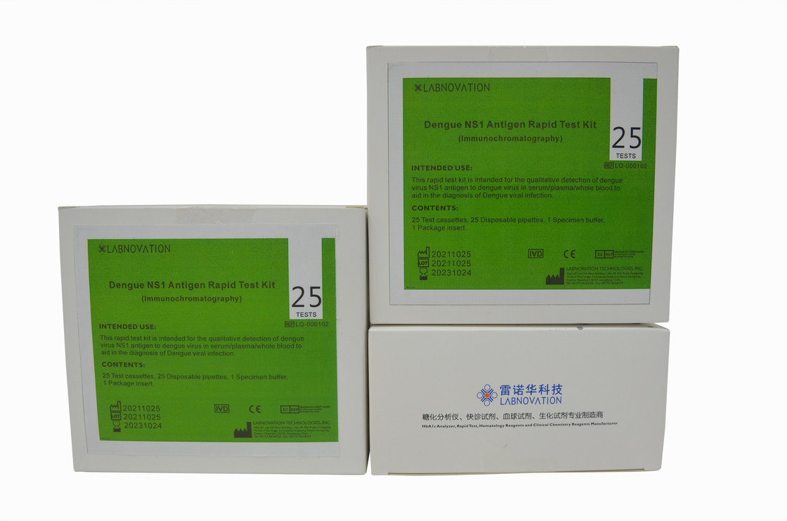 Le kit rapide d'essai d'antigène de la dengue NS1 est prévu pour la détection qualitative de l'antigène du virus de dengue NS1 au virus de dengue dans le sérum/plasama/sang total pour faciliter le diagnostic de l'infection de virus de dengue.